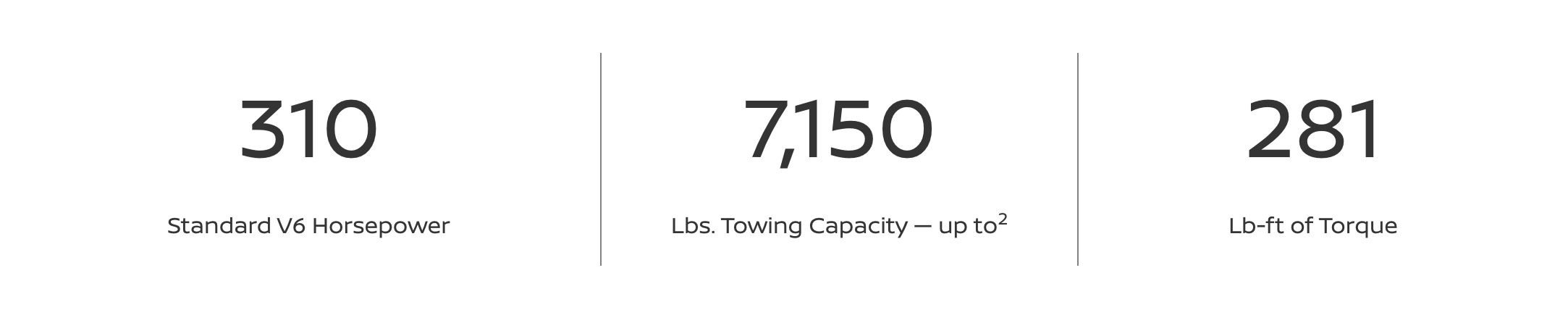3 Towing capacity varies by configuration. See Nissan Towing Guide and Owner’s Manual for additional information. Always secure cargo.