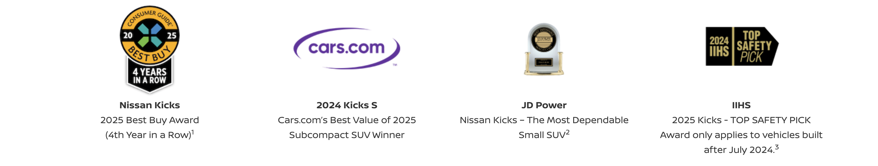 1. Price shown is Manufacturer's Suggested Retail Price (MSRP) for base model trim. Kicks SR AWD Premium with Premium Package and Paint w/ Two Tone shown priced higher at $30,310. MSRP excludes tax, title, license, options, and destination and handling charges. Dealer sets actual price. Some color, package, and option selections may include, exclude, or require the purchase of additional options and packages. Some options shown may not be available on all trims. See retailer for details.