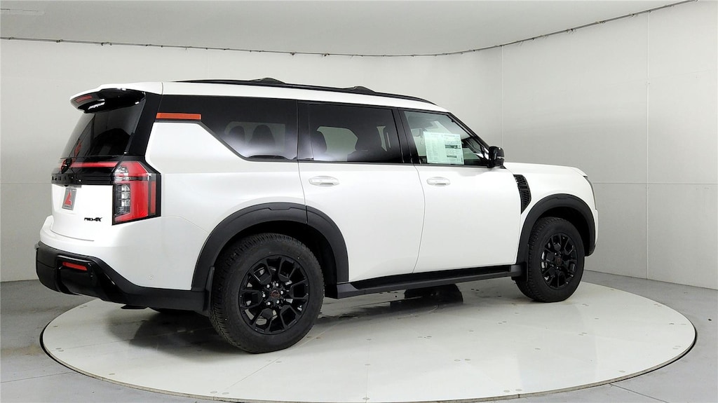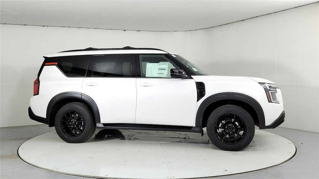 Experience the untamed luxury of the 2025 Nissan Armada PRO-4X, where sophisticated design meets formidable performance. Its powerful V6 engine coupled with four-wheel drive conquers any terrain effortlessly, ensuring every adventure is unforgettable. Step inside to be enveloped by the refined Charcoal interior, perfectly contrasting the sleek Aspen White exterior.